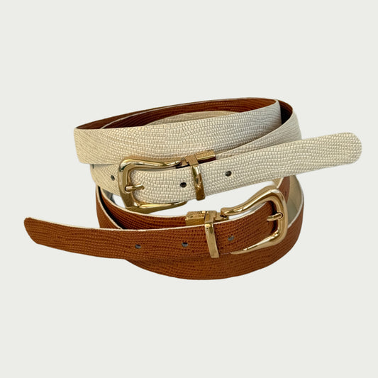 Cinturón doble faz en cuero beige y miel Ref: XDF25WPMI