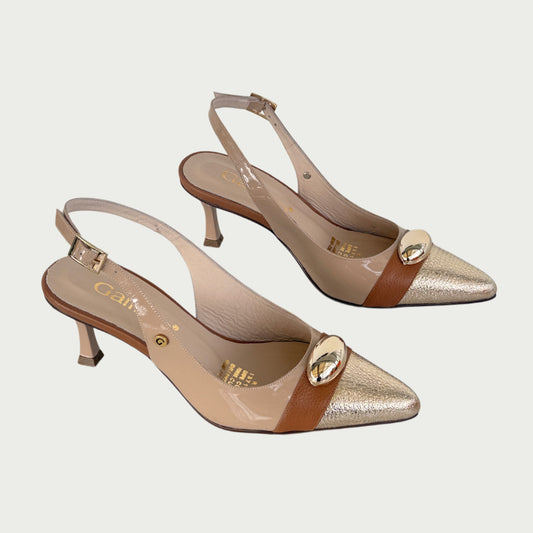 Stilettos destalonados en cuero oro castaña x nude Ref: PC98WPNU