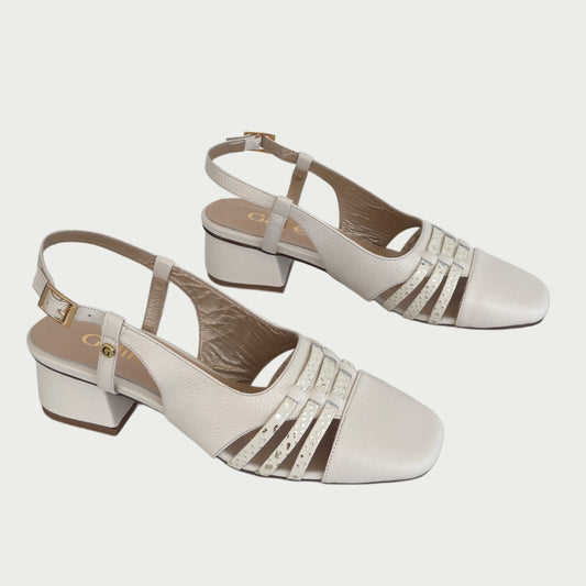 Zapato en cuero talco x folia Ref: 4010WPTA