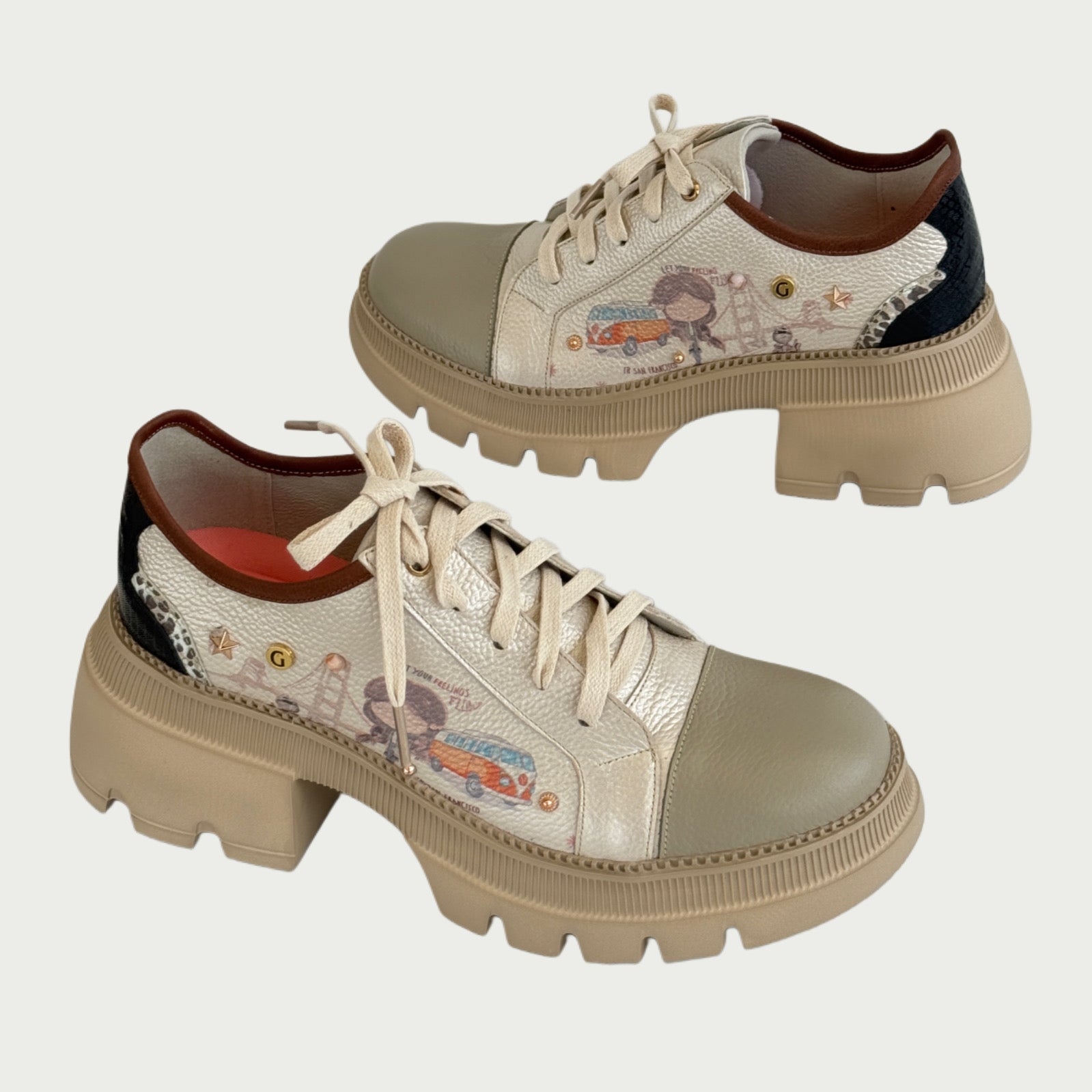 Bolichero en cuero platino x beige Ref: 5627WCHA